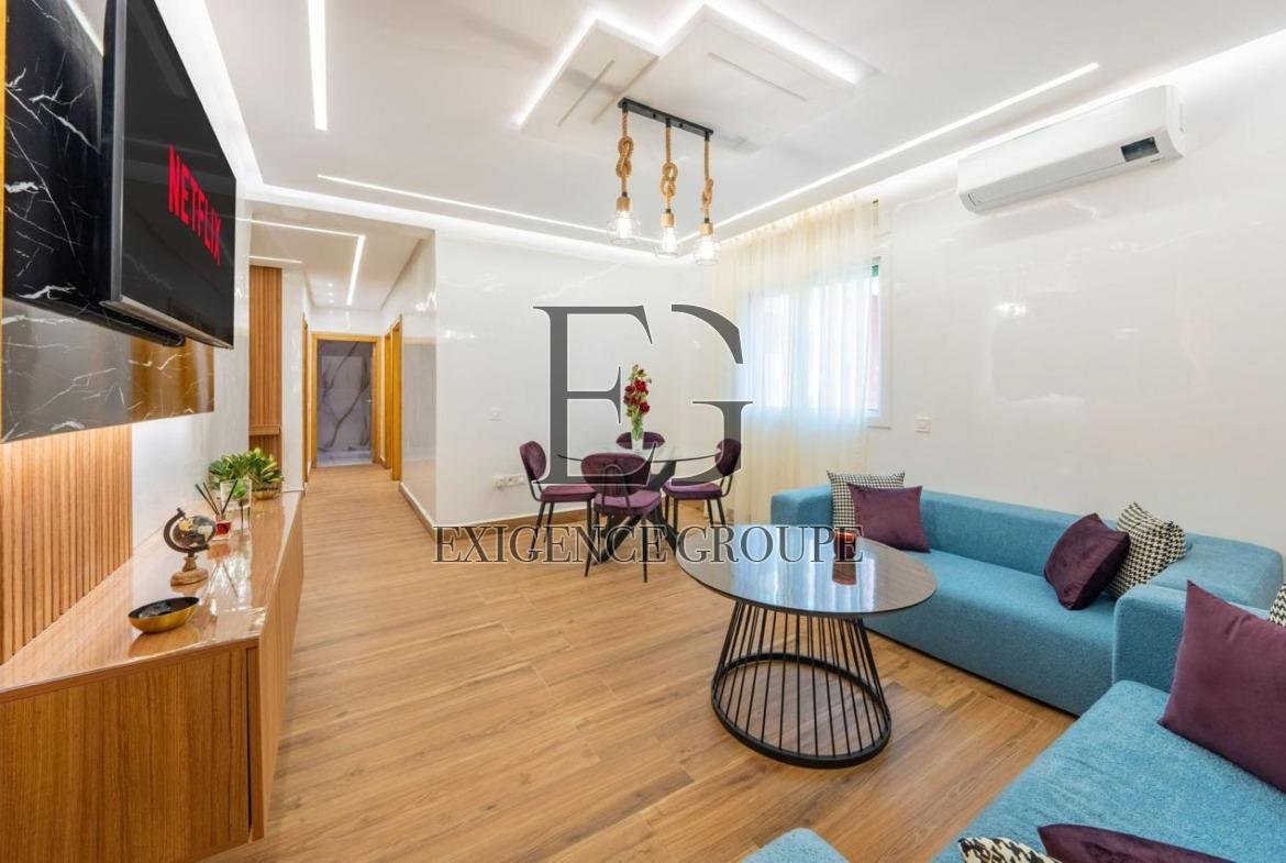 Situé dans une résidence sécurisée avec piscine, à proximité immédiate de l’Académie de police à Gueliz, cet appartement moderne offre un cadre de vie confortable et raffiné. Entièrement meublé avec un mobilier contemporain de qualité, il allie design et praticité pour une location longue durée.