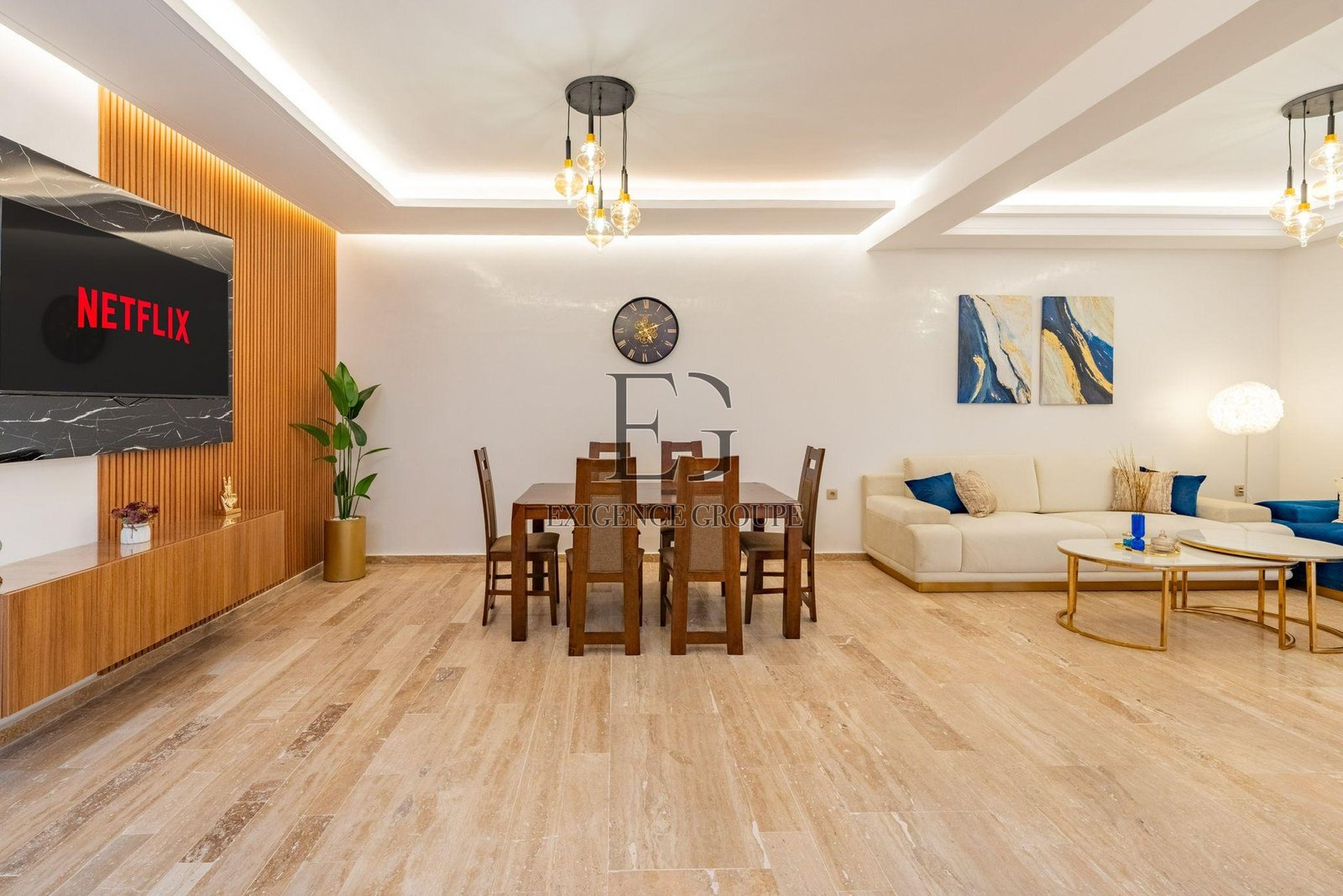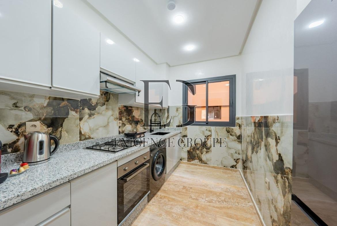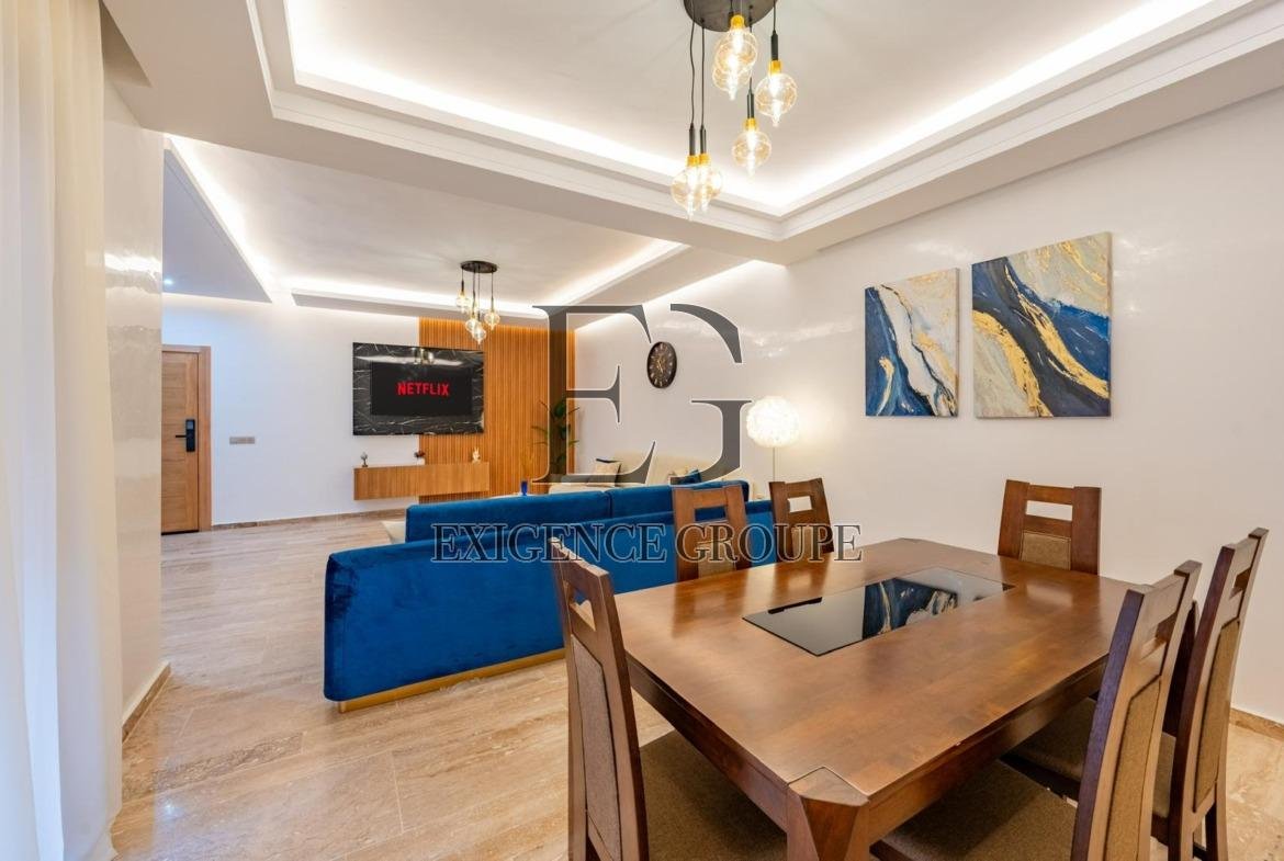 Situé dans une résidence sécurisée du prestigieux quartier de l’Hivernage, cet appartement meublé allie modernité et confort. Avec son mobilier ultra moderne, son salon lumineux et épuré ainsi que ses finitions soignées, il offre un cadre de vie idéal pour une location longue durée.