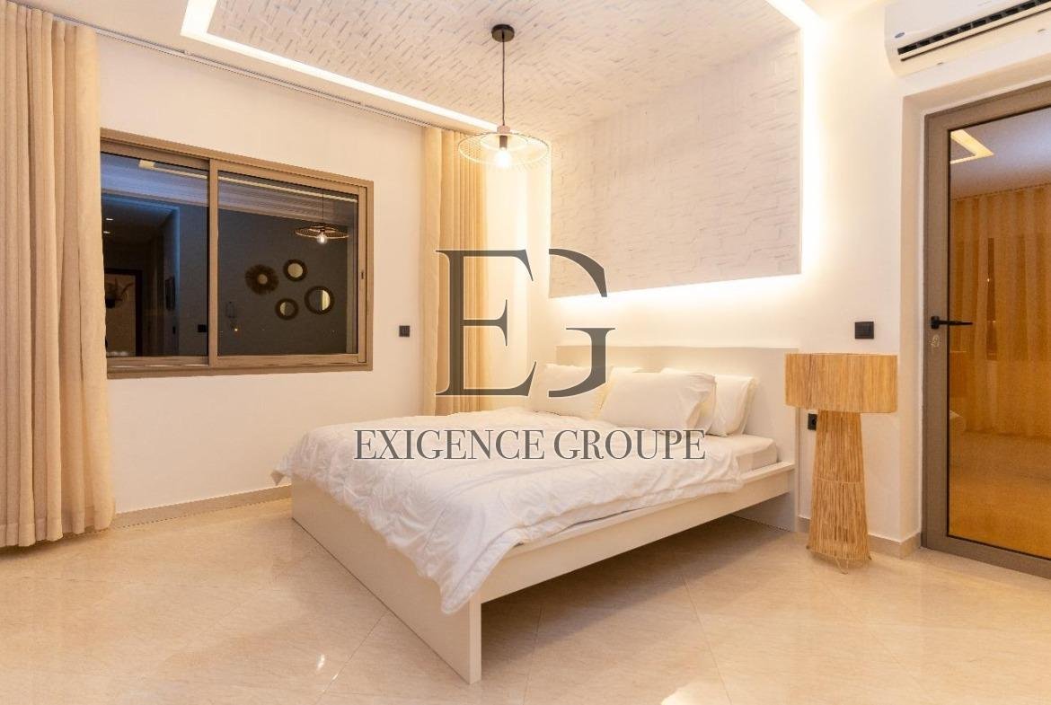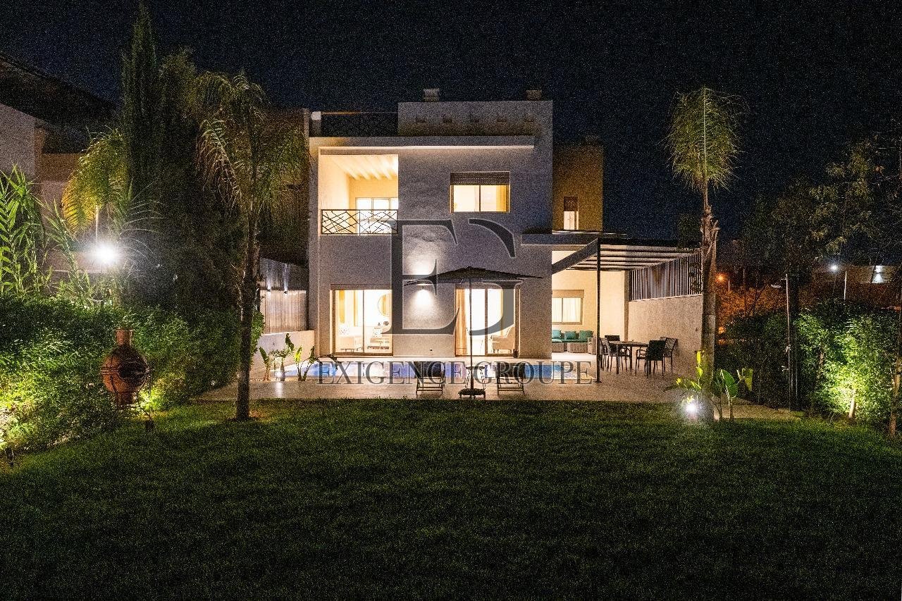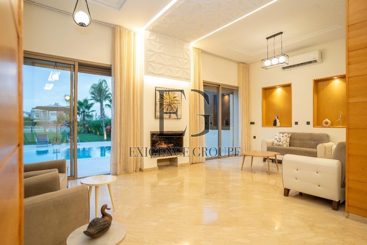 Située au cœur de la résidence sécurisée du Golf Argan, cette villa moderne marie confort et élégance. Avec ses grands espaces lumineux, son mobilier contemporain et son extérieur paysagé, elle est idéale pour un séjour alliant détente et raffinement.