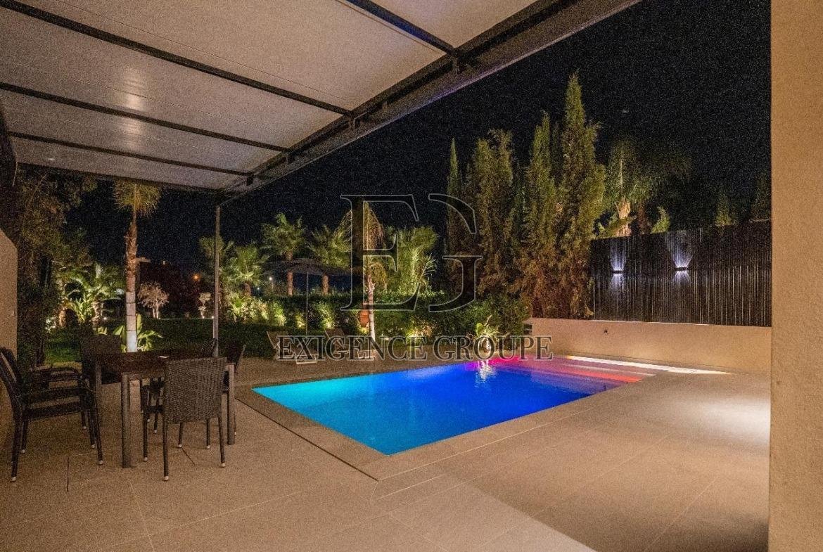 - Extérieur : jardin paysagé, piscine privée, espace détente